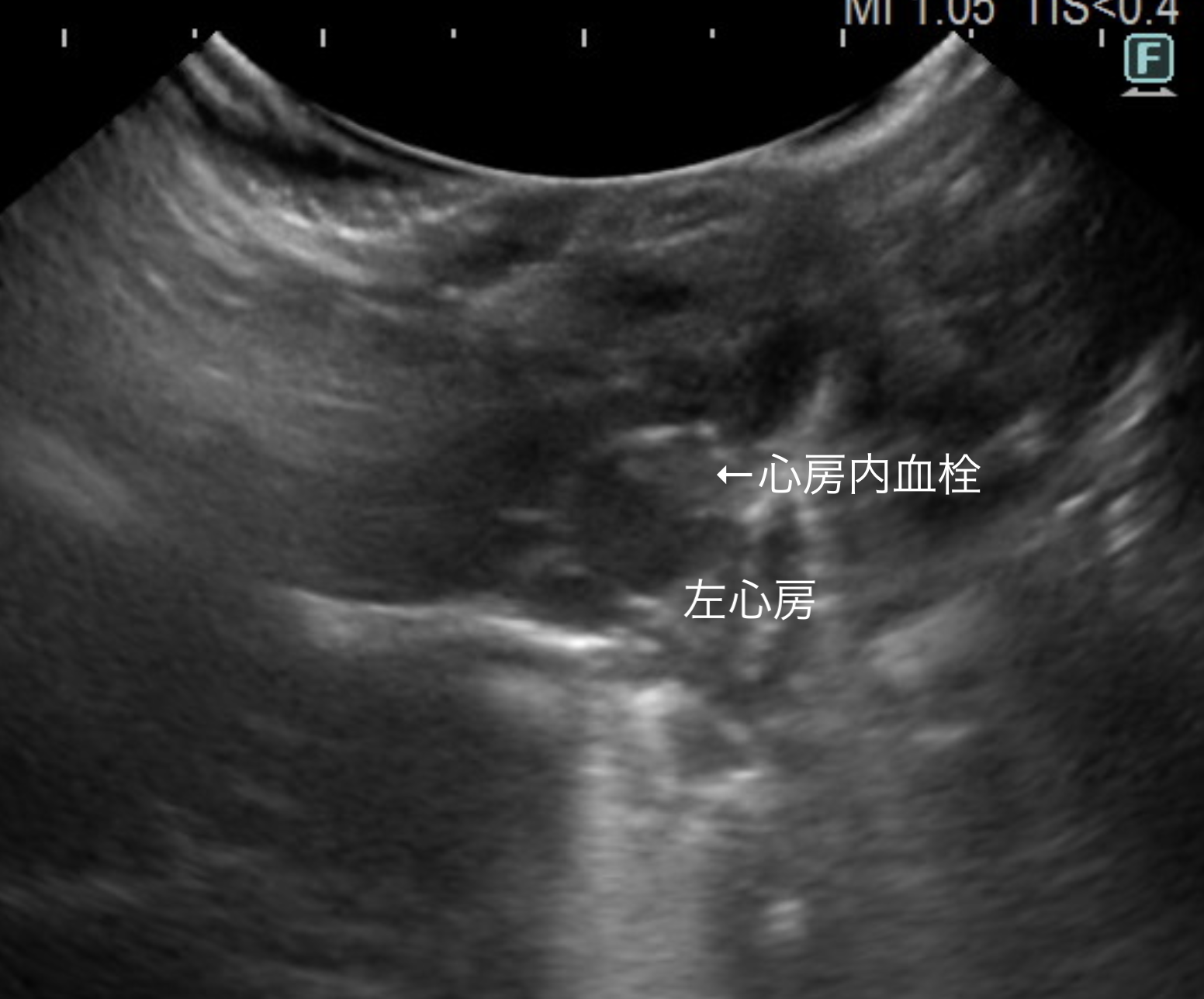 左心房内に血栓(画像)が確認されることも珍しくありません。